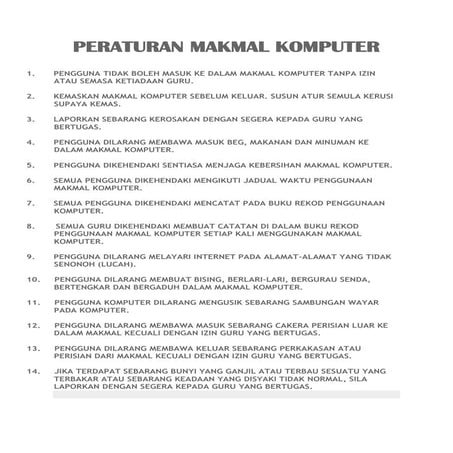Peraturan Makmal Komputer Sekolah Pdf